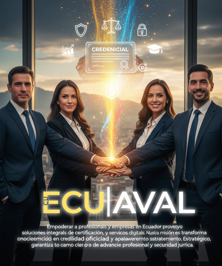 ECUAVAL es el ecosistema profesional de soluciones líder en Ecuador, diseñado para transformar la experiencia en credibilidad y facilitar el crecimiento. Operamos como el puente clave para profesionales y empresas, ofreciendo un portafolio integral que incluye aval y certificación académica de alto valor, servicios especializados de mediación y trámites legales (a través de ECUAVAL LEGAL), y soluciones digitales para la modernización empresarial. Confíe en nuestra autoridad para validar su conocimiento, resolver sus conflictos y asegurar su avance profesional en el mercado ecuatoriano.